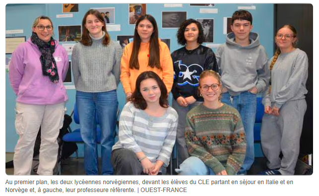 Chaque année, depuis huit ans, deux ou trois élèves norvégiens sont scolarisés pendant une année scolaire au CLE. C’est le cas de Sarah et Ovidie qui suivent le programme de seconde dans sa quasi-totalité. Elles suivent donc les cours en français : « En arrivant, nous avions un faible niveau de langue française. Nous étions surprises par la rapidité de la parole, le verlan des camarades et surtout la manière de travailler plus longuement pendant une semaine. En dehors du CLE, c’est un choc culturel avec cette quantité de fromages et de yaourts différents ! Nous séjournons dans des familles ici, avec lesquelles nous partageons des week-ends en excursion. Nous pratiquons la natation tous les mercredis. Finalement, nous sommes surprises d’apprendre aussi rapidement le français. »
